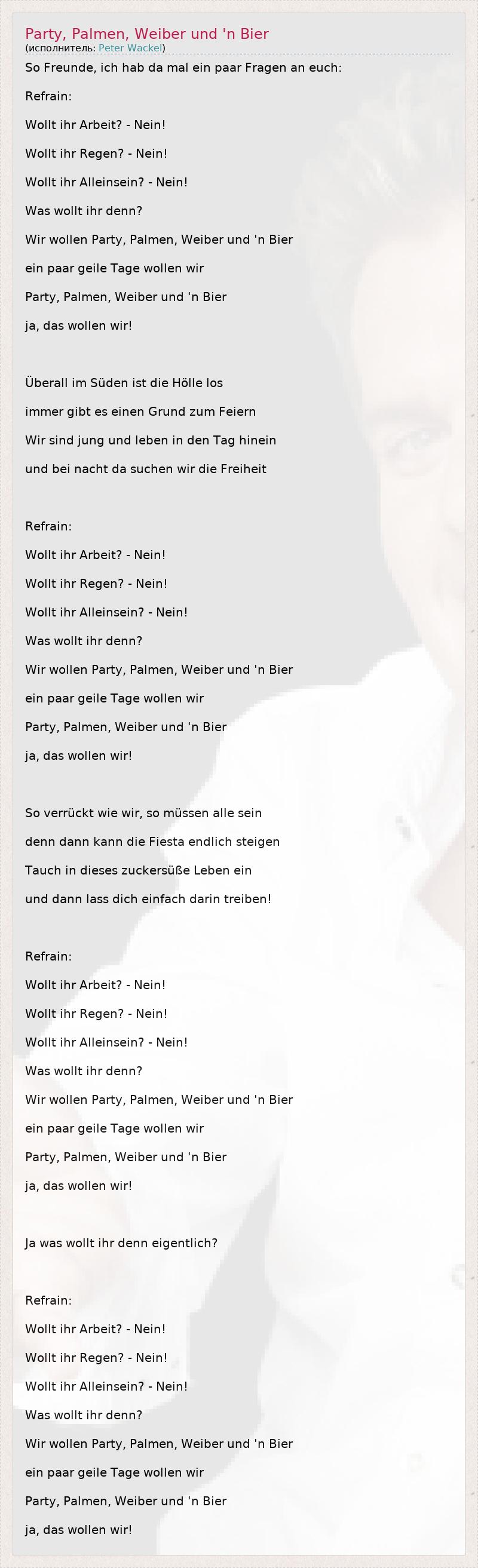 А как ты думаешь, о чем песня "Party, Palmen, Weiber und 'n Bier" ?