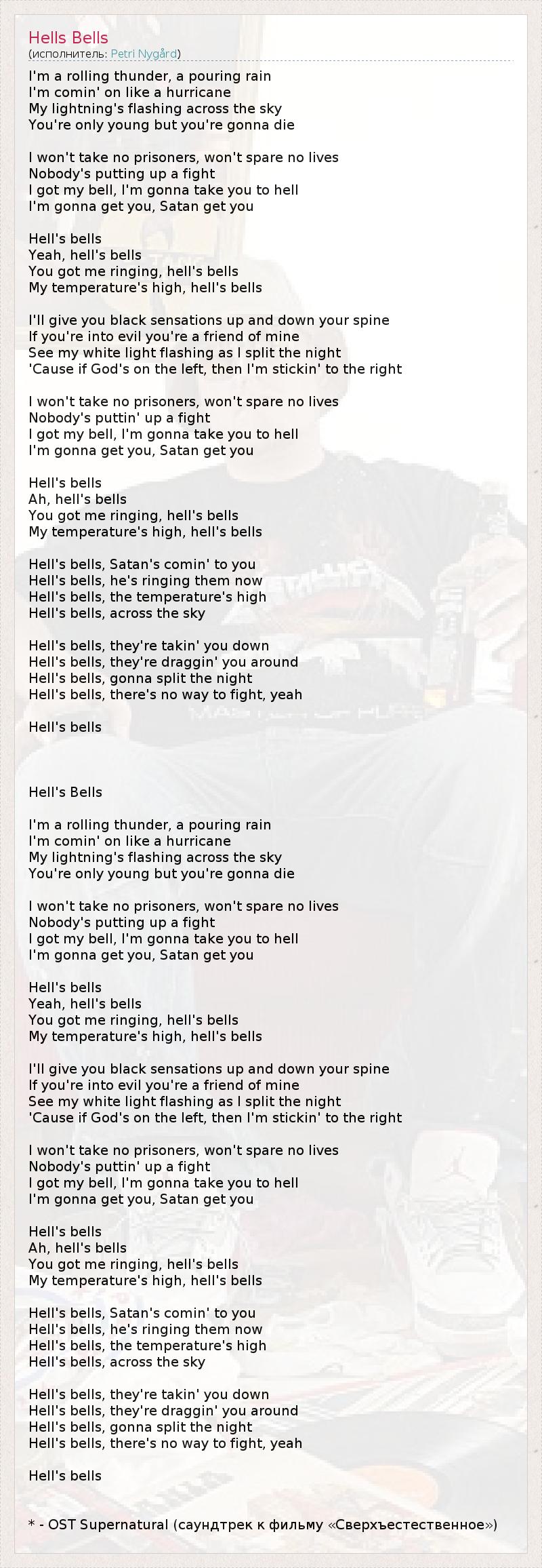 А как ты думаешь, о чем песня "Hells Bells" ?