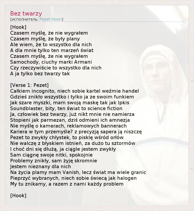 А как ты думаешь, о чем песня "Bez twarzy" ?