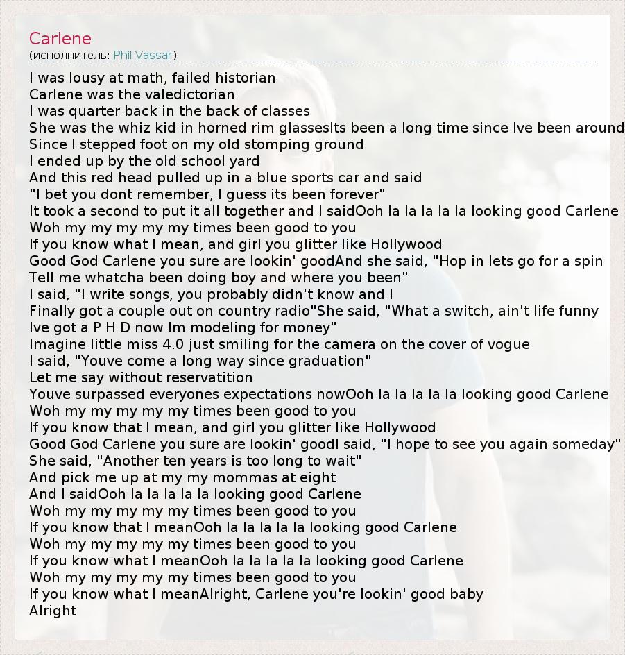 If you know what I meanAlright, Carlene you're lookin' good baby