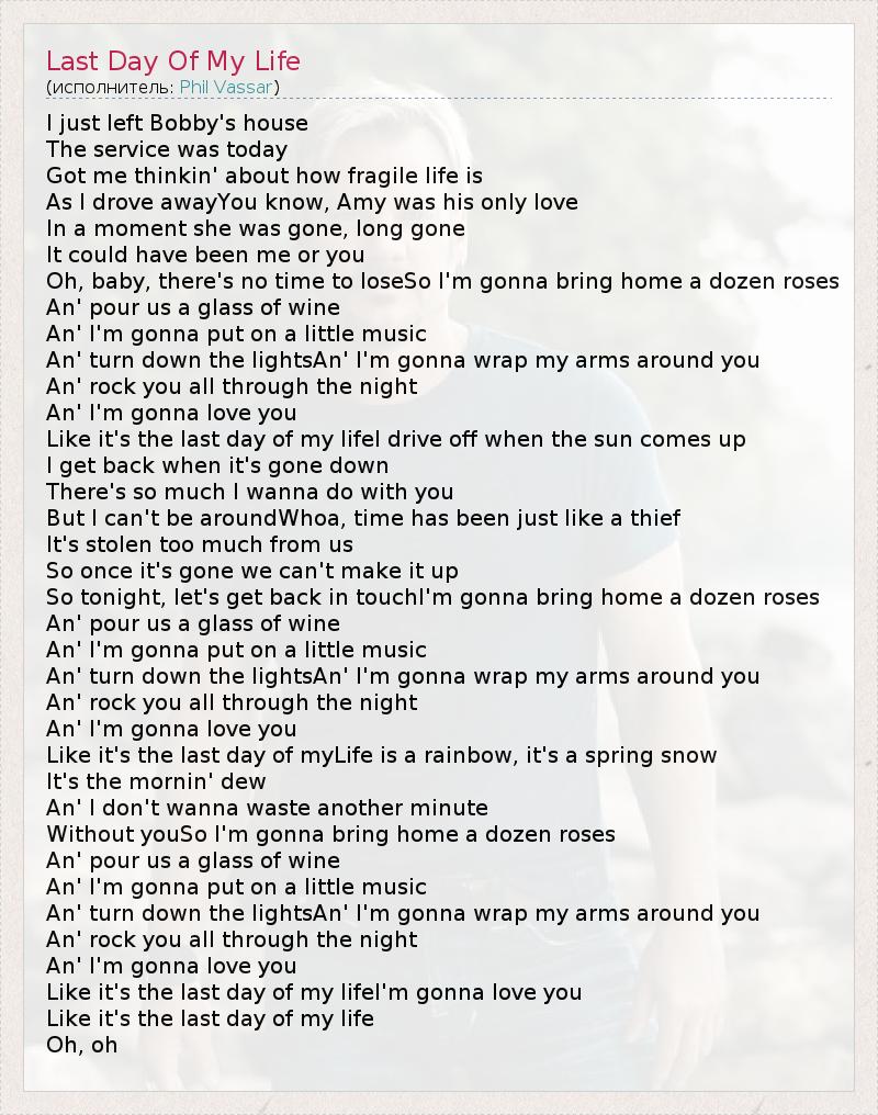 А как ты думаешь, о чем песня "Last Day Of My Life" ?