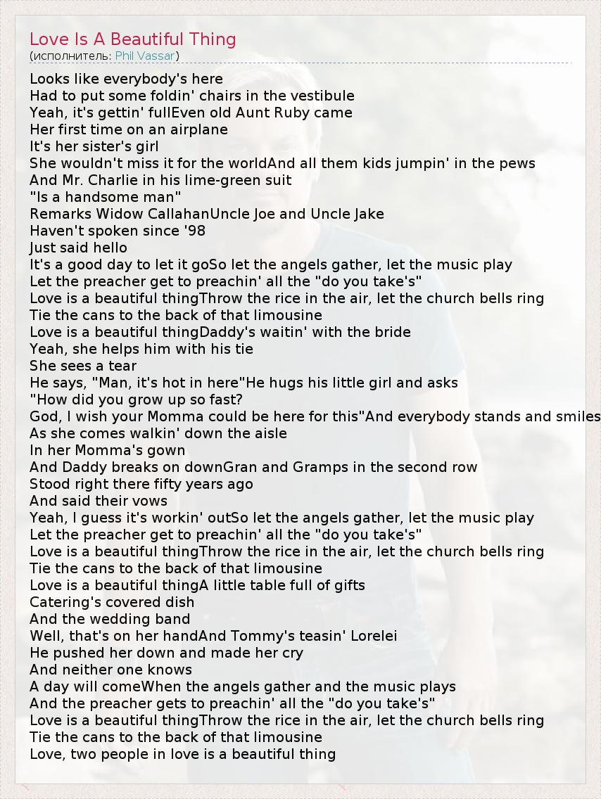 ГлавнаяИсполнителиPhil VassarLove Is A Beautiful Thing
