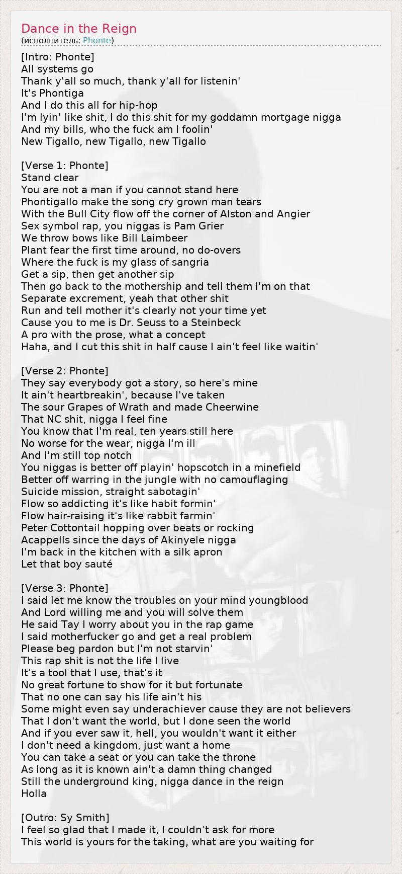 Это интересно:Phonte Coleman - американский рэпер из Северной Каролины, бывший участник трио Little Brother, которая распалась в 2010 году. 27 сентября 2011 выпустил дебютный сольный альбом Charity Starts At Home, который был высоко оценен критиками.