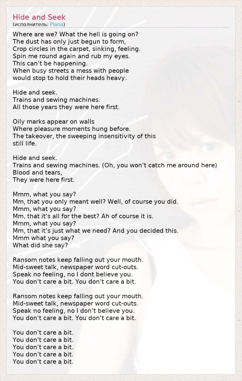 А как ты думаешь, о чем песня "Hide and Seek" ?