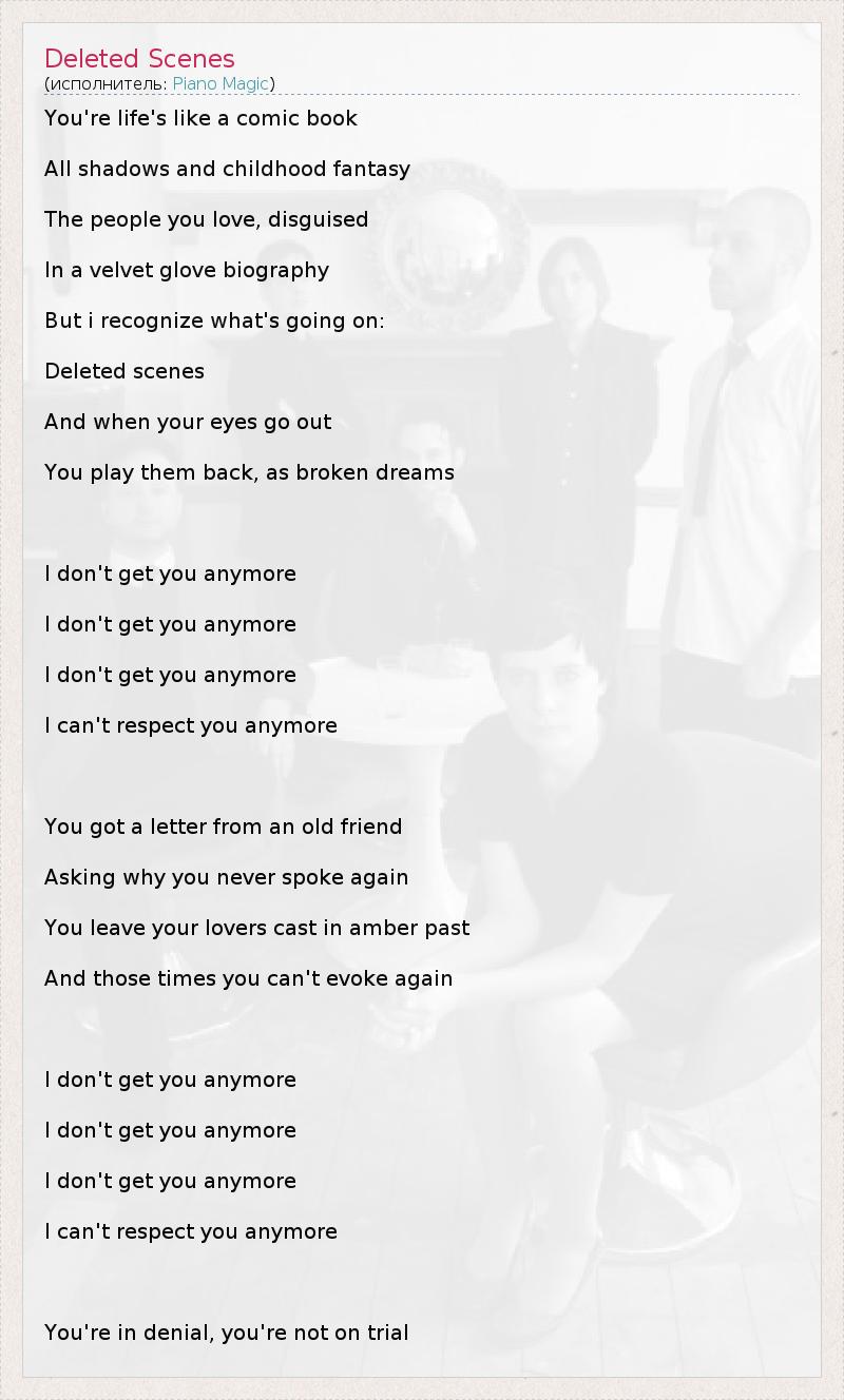 А как ты думаешь, о чем песня "Deleted Scenes" ?