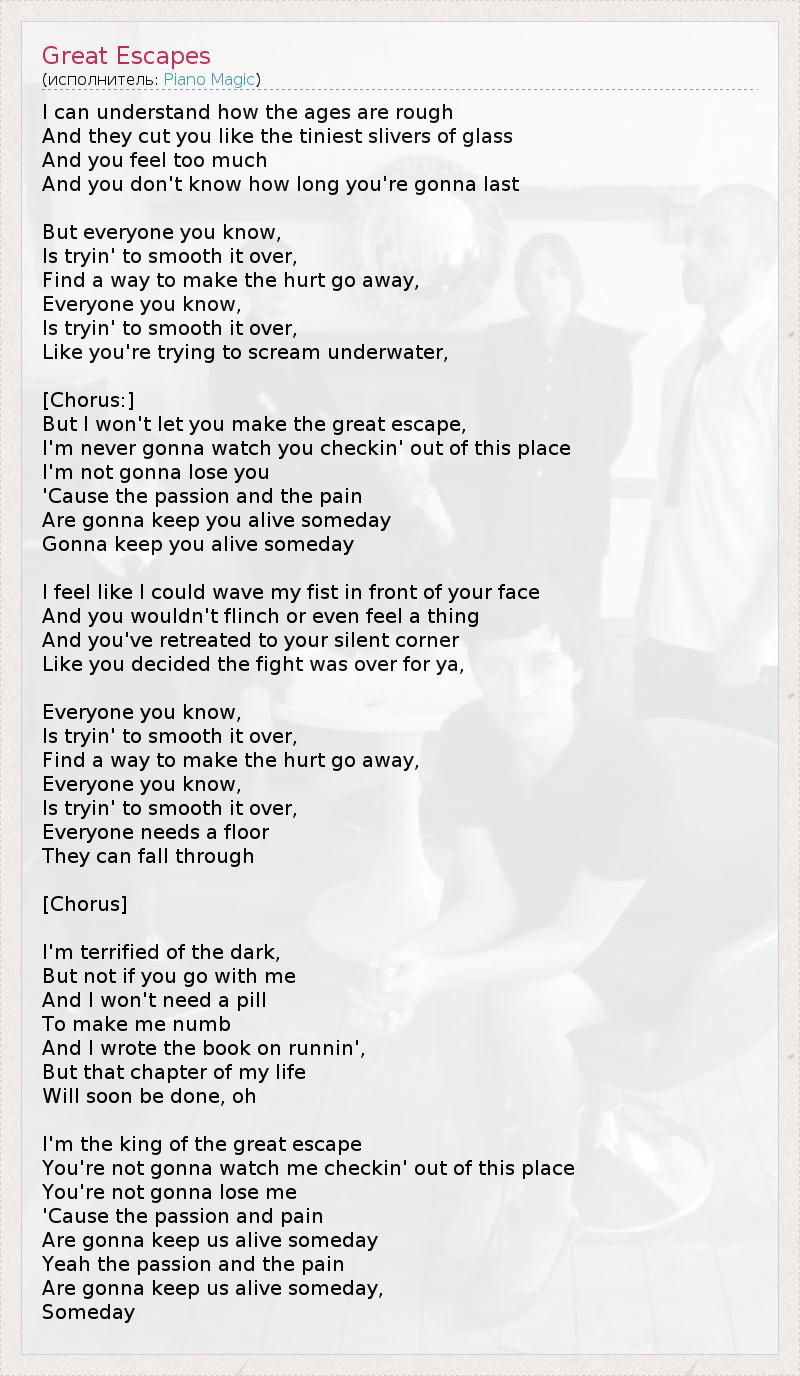 А как ты думаешь, о чем песня "Great Escapes" ?