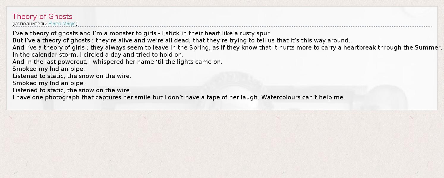 А как ты думаешь, о чем песня "Theory of Ghosts" ?