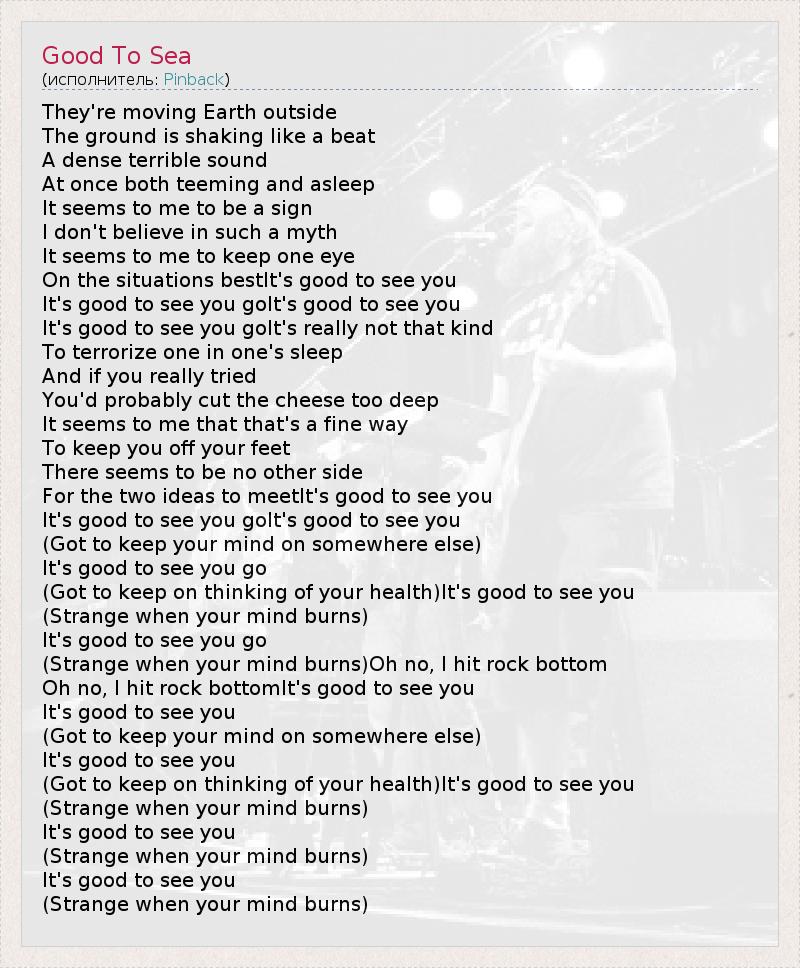 А как ты думаешь, о чем песня "Good To Sea" ?