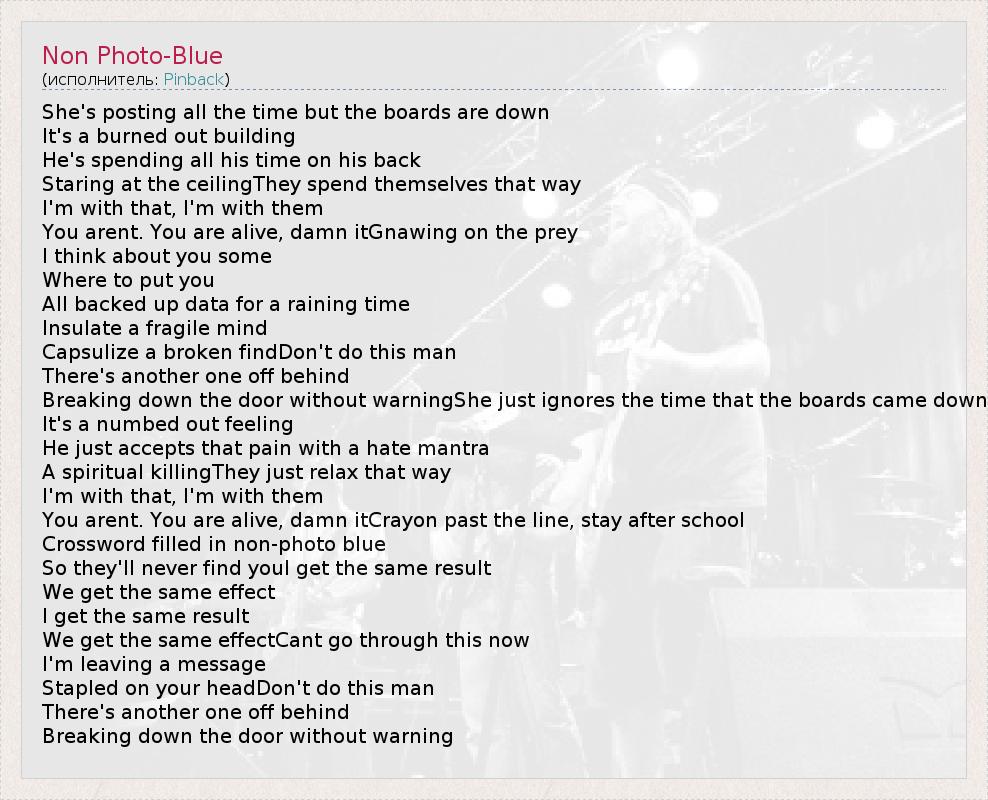 А как ты думаешь, о чем песня "Non Photo-Blue" ?
