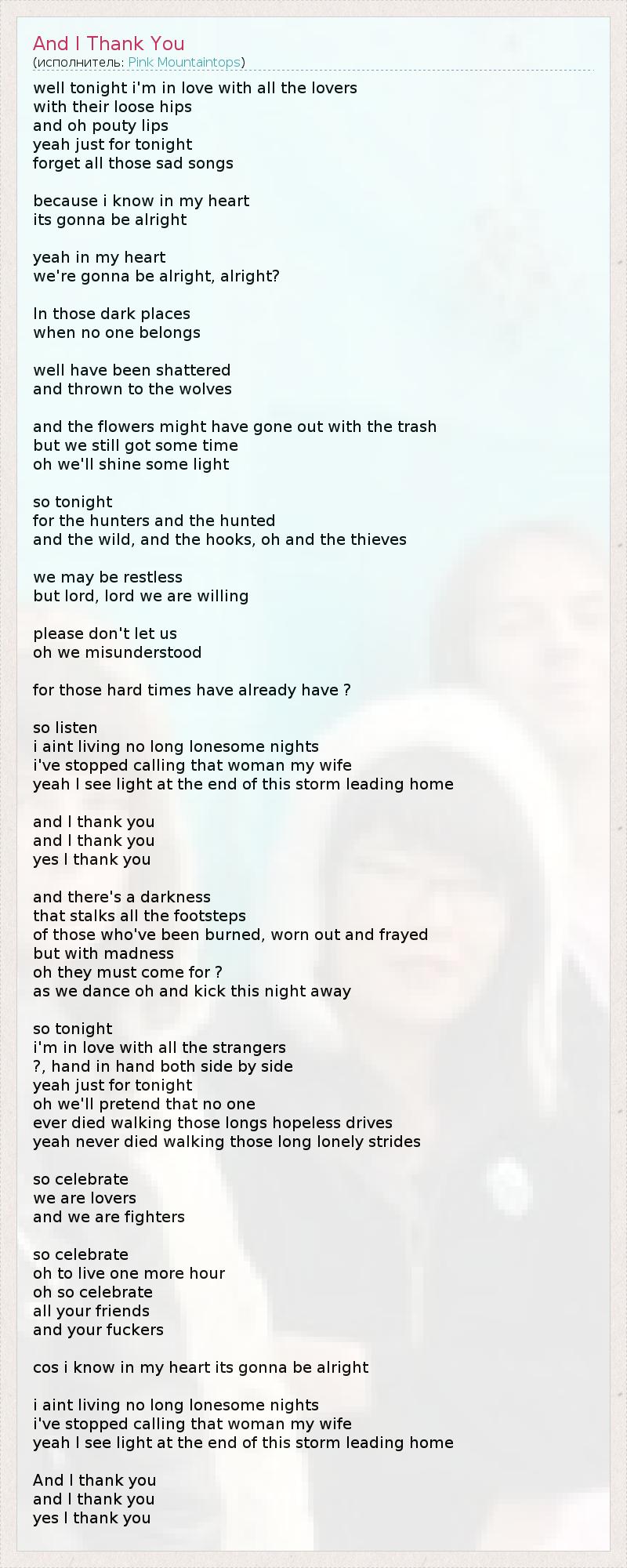 А как ты думаешь, о чем песня "And I Thank You" ?