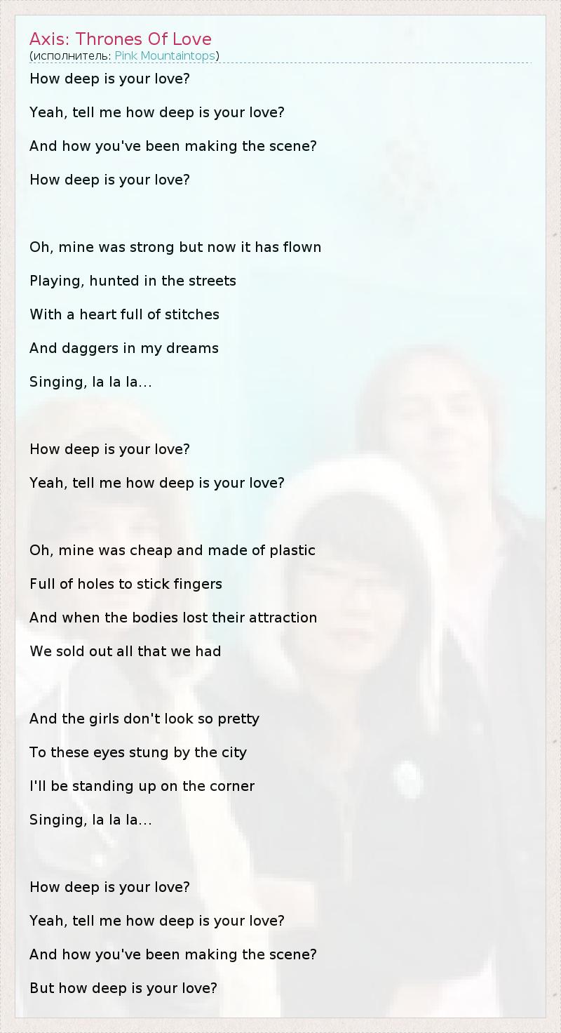 А как ты думаешь, о чем песня "Axis: Thrones Of Love" ?