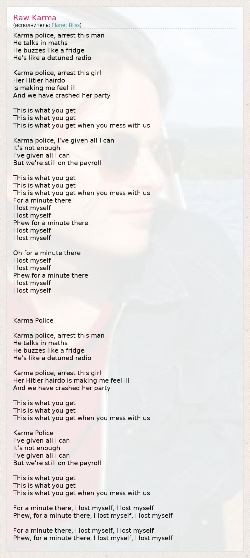 А как ты думаешь, о чем песня "Raw Karma" ?