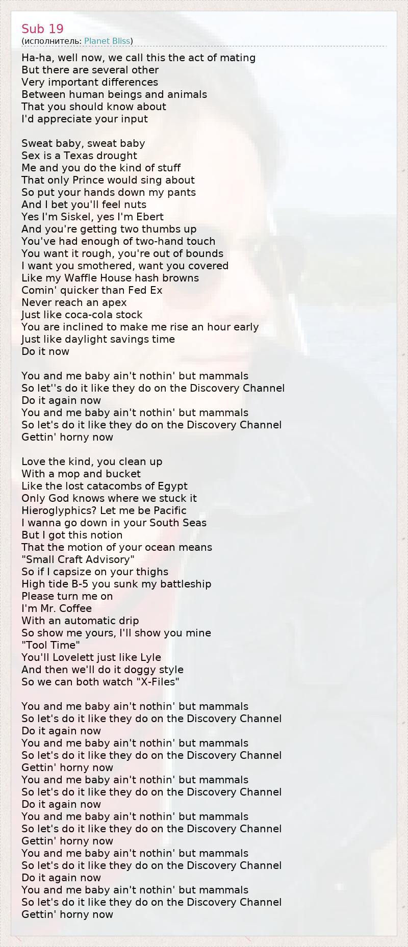 You and me baby ain't nothin' but mammals