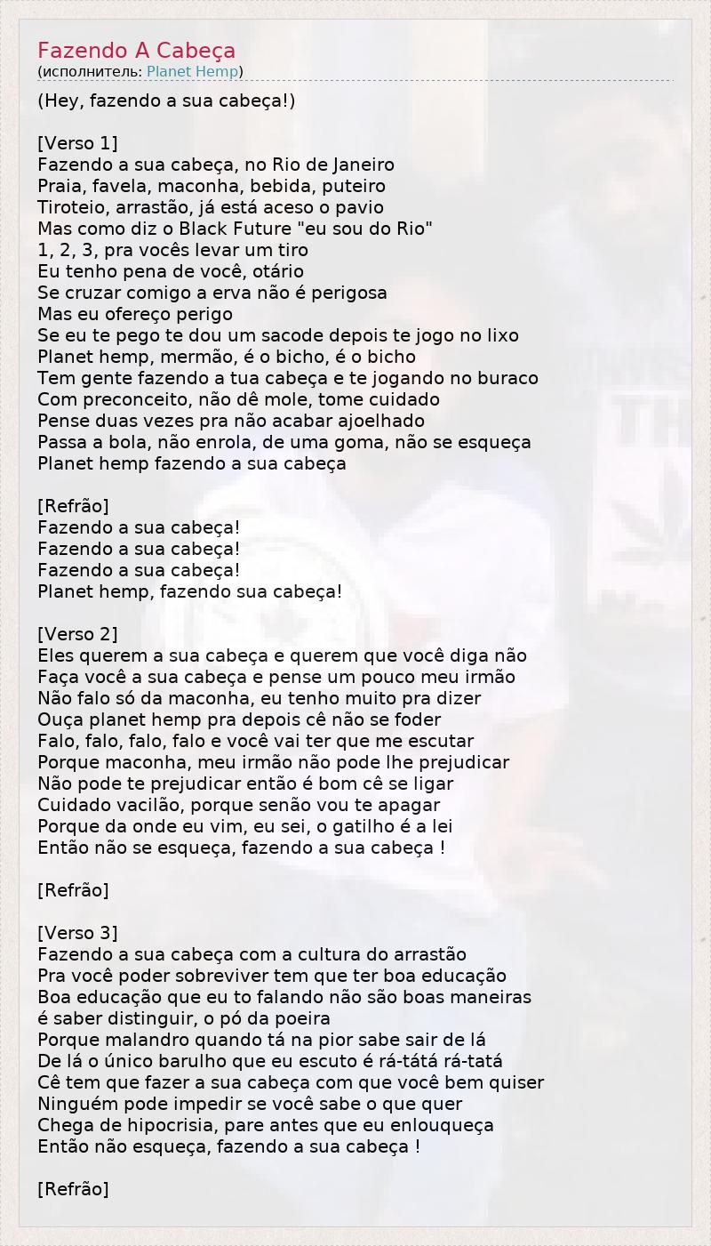 А как ты думаешь, о чем песня "Fazendo A Cabeça" ?