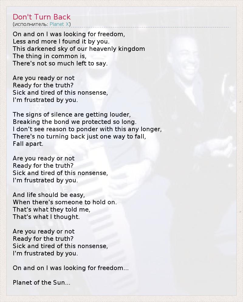 А как ты думаешь, о чем песня "Don't Turn Back" ?