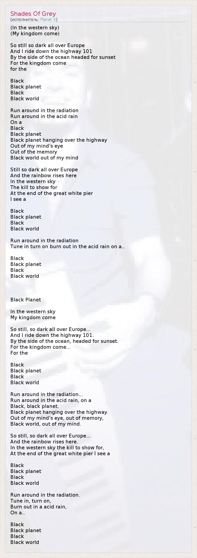 А как ты думаешь, о чем песня "Shades Of Grey" ?