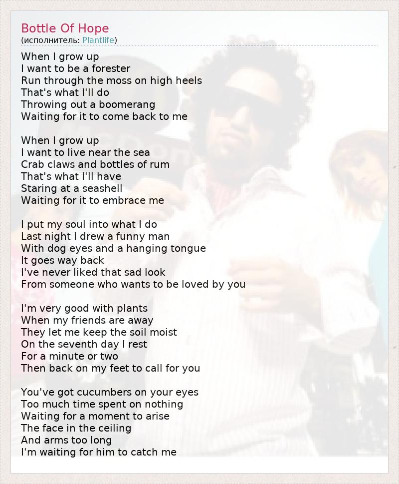А как ты думаешь, о чем песня "Bottle Of Hope" ?
