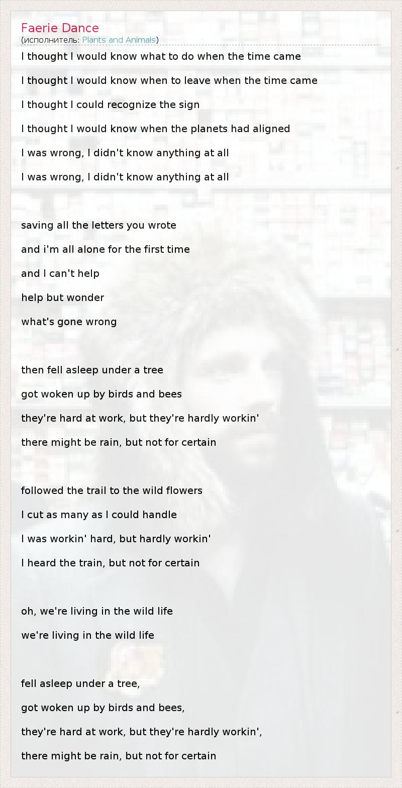 Это интересно:Plants and Animals are a Canadian indie-rock band from Montreal (featuring two members originally from Halifax, Nova Scotia) which comprises guitarist-vocalists Warren Spicer and Nic Basque and drummer-vocalist Matthew Woody Woodley. They often describe their music as post-classic rock. They are signed to Secret City Records. Their first full-length album, Parc Avenue, was shortlisted for the 2008 Polaris Music Prize and nominated for a 2009 Juno Award for Alternative Album of the Year. Plants and Animals were also given a 2009 Juno nomination for Best New Band.
