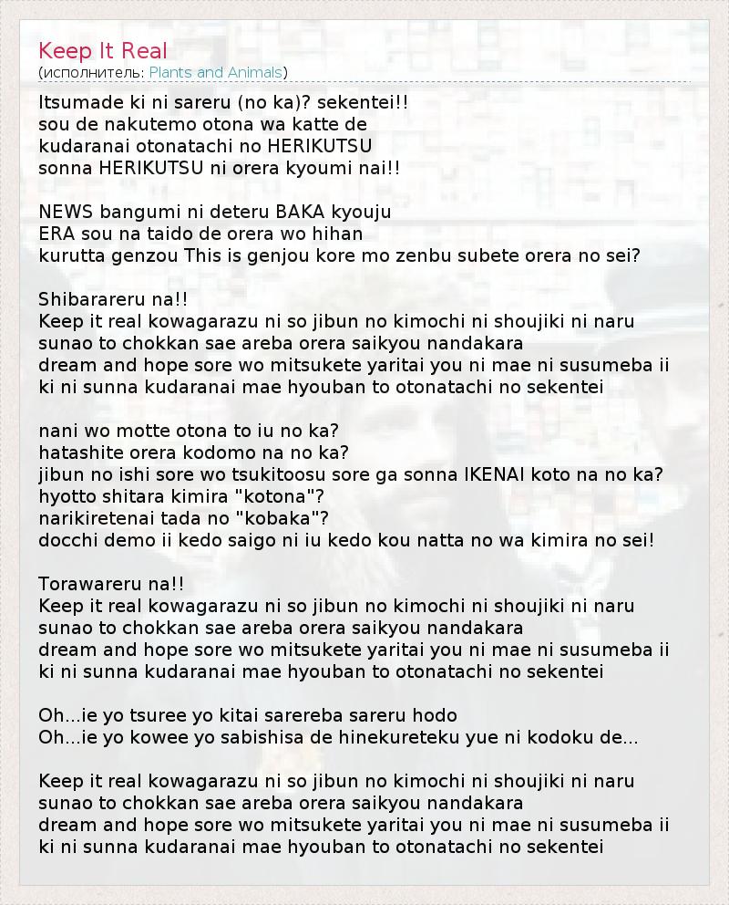 А как ты думаешь, о чем песня "Keep It Real" ?