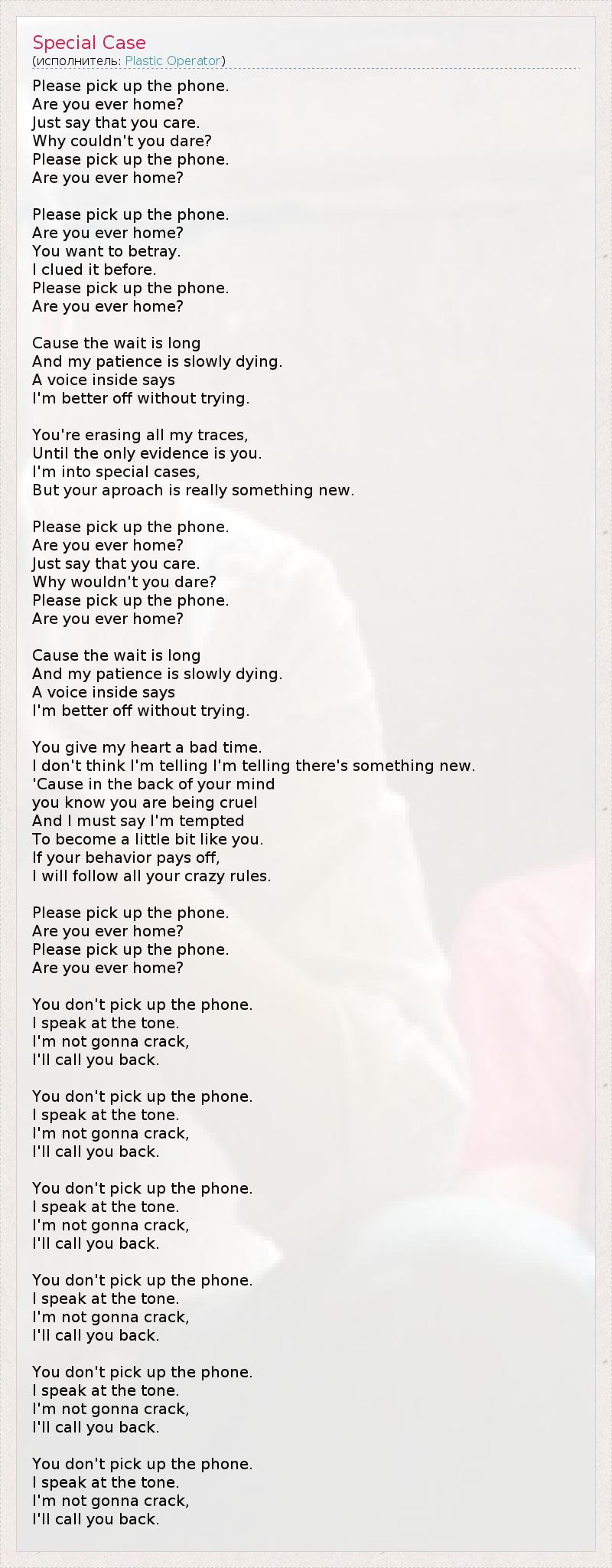 А как ты думаешь, о чем песня "Special Case" ?