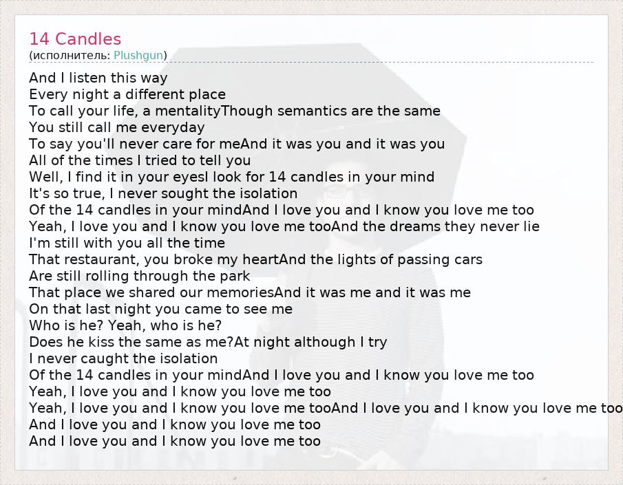 Of the 14 candles in your mindAnd I love you and I know you love me too