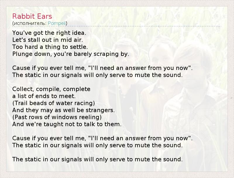 А как ты думаешь, о чем песня "Rabbit Ears" ?