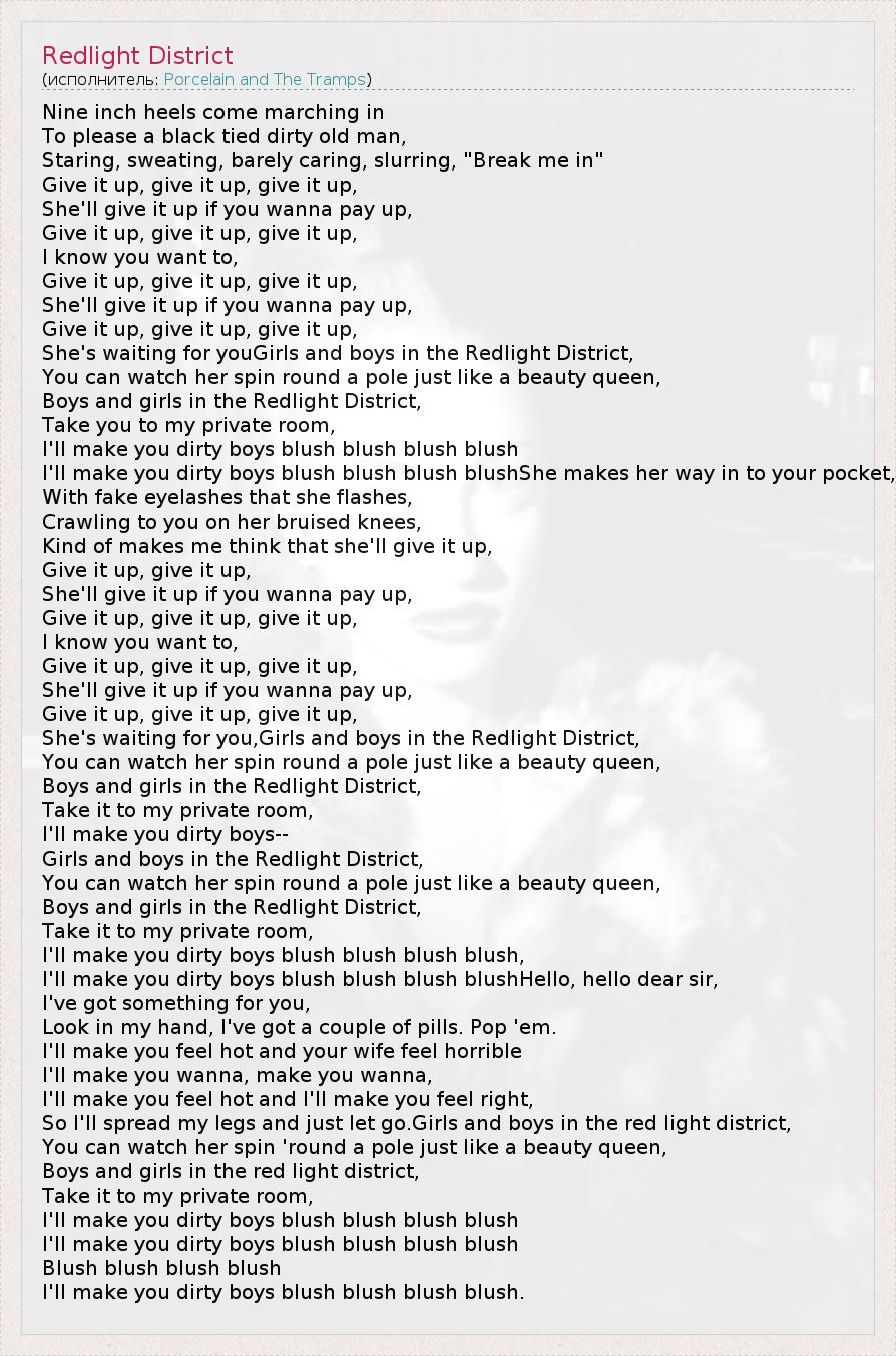 So I'll spread my legs and just let go.Girls and boys in the red light district,