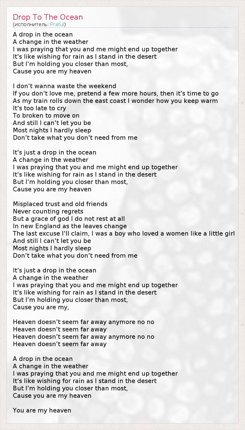 А как ты думаешь, о чем песня "Drop To The Ocean" ?