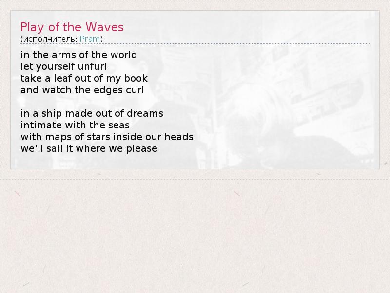 А как ты думаешь, о чем песня "Play of the Waves" ?