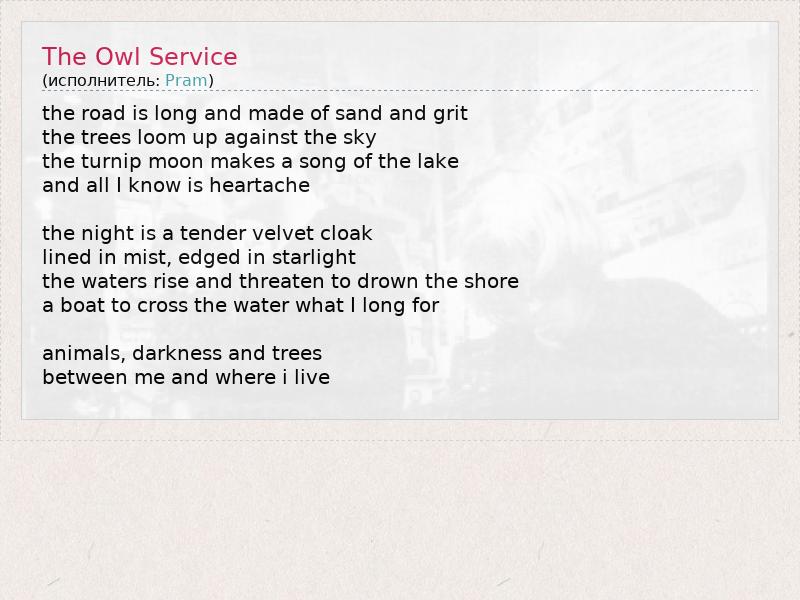 А как ты думаешь, о чем песня "The Owl Service" ?