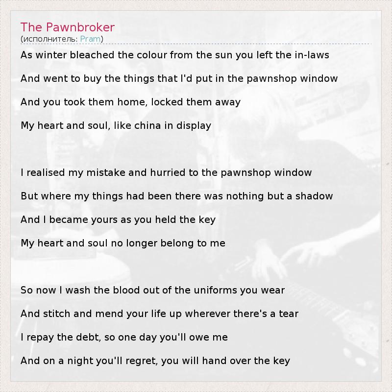 А как ты думаешь, о чем песня "The Pawnbroker" ?