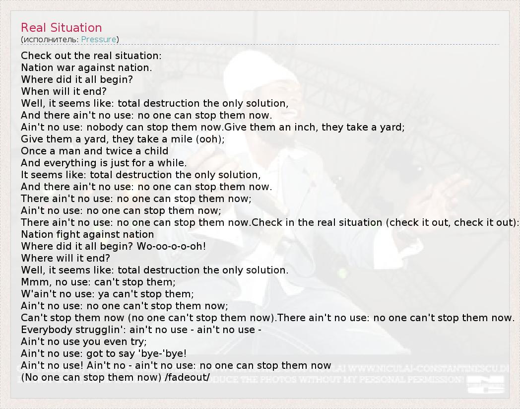 There ain't no use: no one can stop them now.Check in the real situation (check it out, check it out):