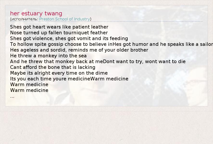А как ты думаешь, о чем песня "her estuary twang" ?
