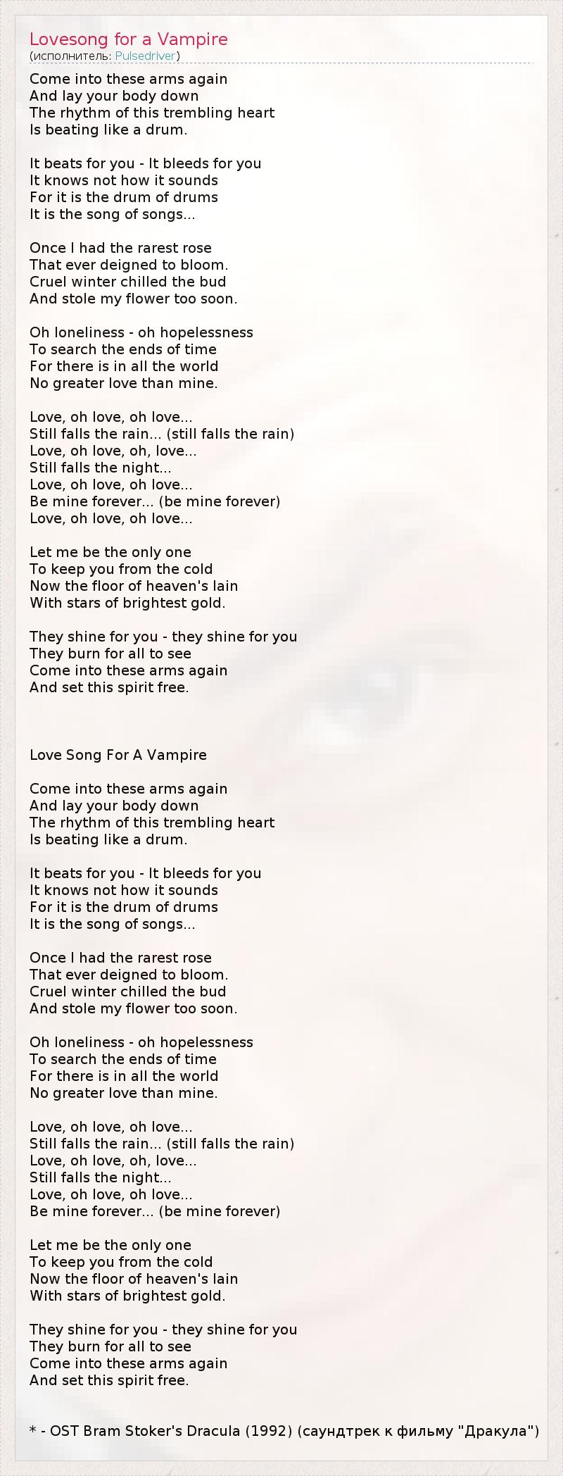 Песня любви Вампира* (перевод Юлия Казакова из Москвы)