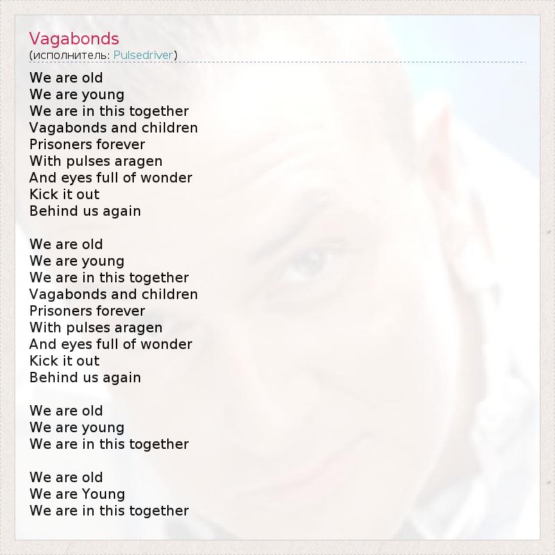 We are old We are young We are in this together Vagabonds and children Prisoners forever With pulses aragen And eyes full of wonder Kick it out Behind us again We are old We are young We are in this together Vagabonds and children Prisoners forever With pulses aragen And eyes full of wonder Kick it out Behind us again We are old We are young We are in this together We are old We are Young We are in this together