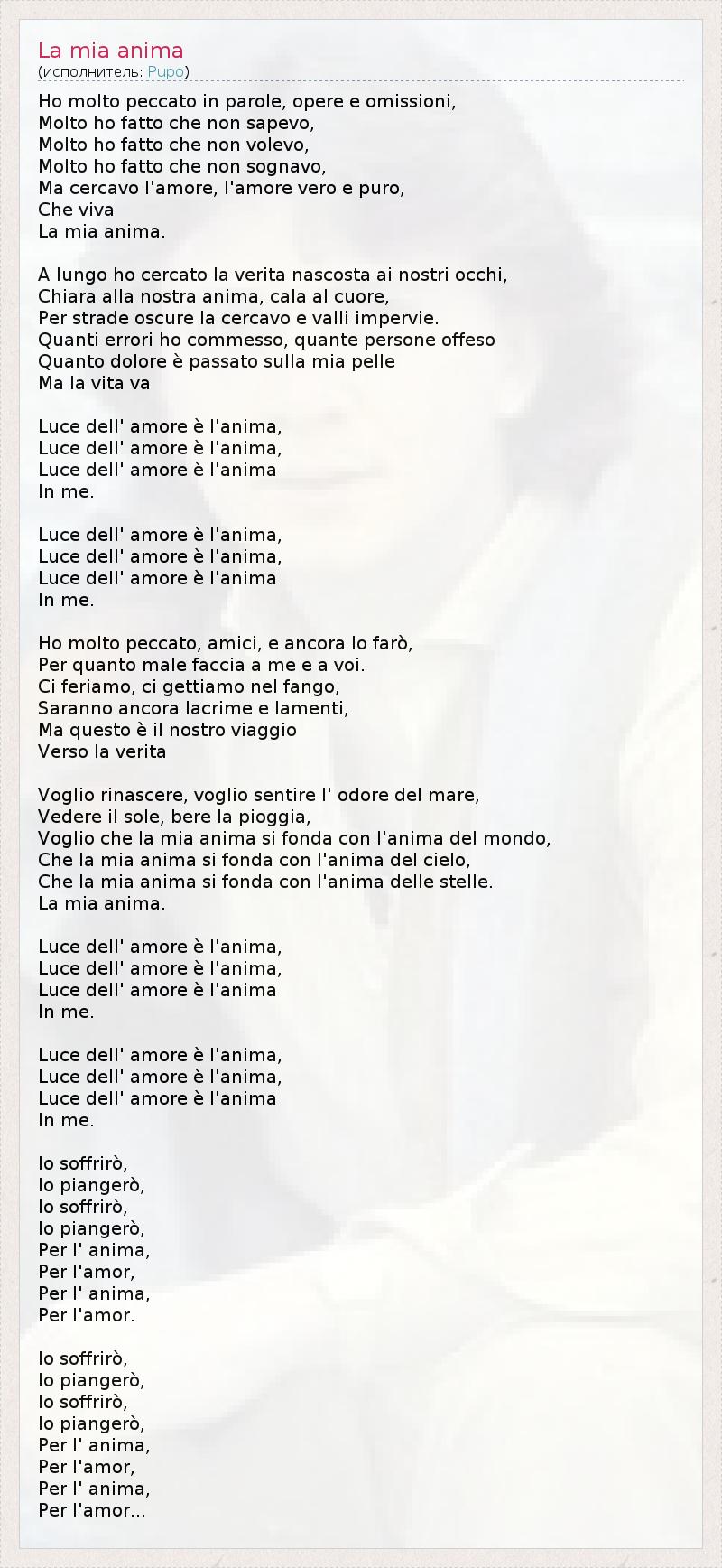 Это интересно:Э́нцо Гина́цци (итал. Enzo Ghinazzi), более известный под псевдонимом Пупо (итал. Pupo, род. 11 сентября 1955) — итальянский певец.Энцо Гинацци родился в итальянском городе Понтичино. Был популярен в 1980-x годах.Его карьера в качестве певца длится уже много лет, начиная с 1975, Пупо было продано свыше двадцати миллионов альбомов и выпущено 11 золотых дисков. Его дебютная пластинка — сингл «Ti scrivero».... продолжение