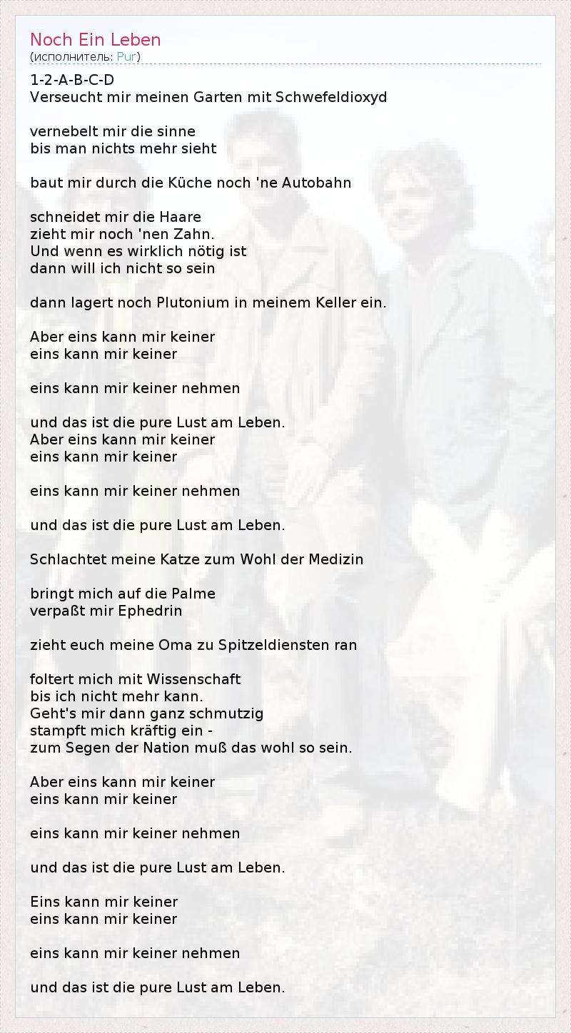 А как ты думаешь, о чем песня "Noch Ein Leben" ?