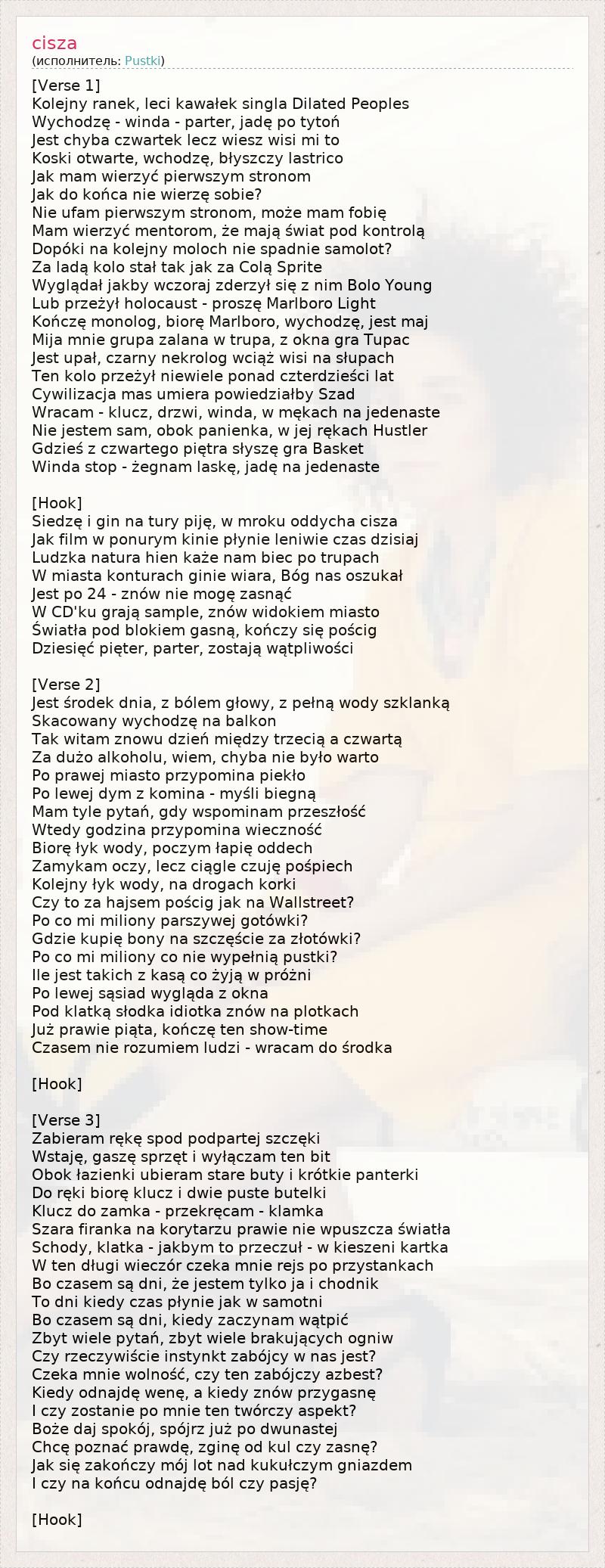 Это интересно:Группа была образована в августе 1999 года в Острувеке под Варшавой гитаристом Радеком Лукасевичем, ударником Гжегожем Сьлюзой и поющим бас-гитаристом Янеком Пенткой. Своим названием коллектив обязан репетеционному помещению, в народе прозванному "pustkami", т.е. "пустырями".Дебютный альбом "Studio Pustki" был выпущен в 2001 году и с большим энтузиазмом воспринят критикой.В 2002... продолжение