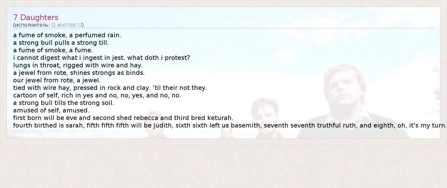 А как ты думаешь, о чем песня "7 Daughters" ?