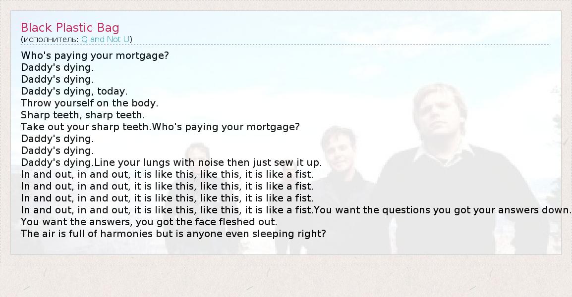 А как ты думаешь, о чем песня "Black Plastic Bag" ?