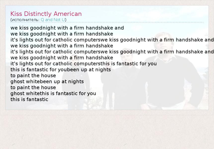 А как ты думаешь, о чем песня "Kiss Distinctly American" ?