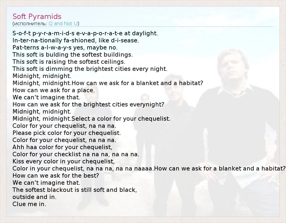 А как ты думаешь, о чем песня "Soft Pyramids" ?