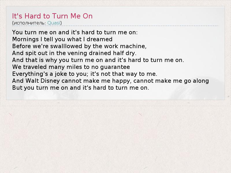 А как ты думаешь, о чем песня "It's Hard to Turn Me On" ?