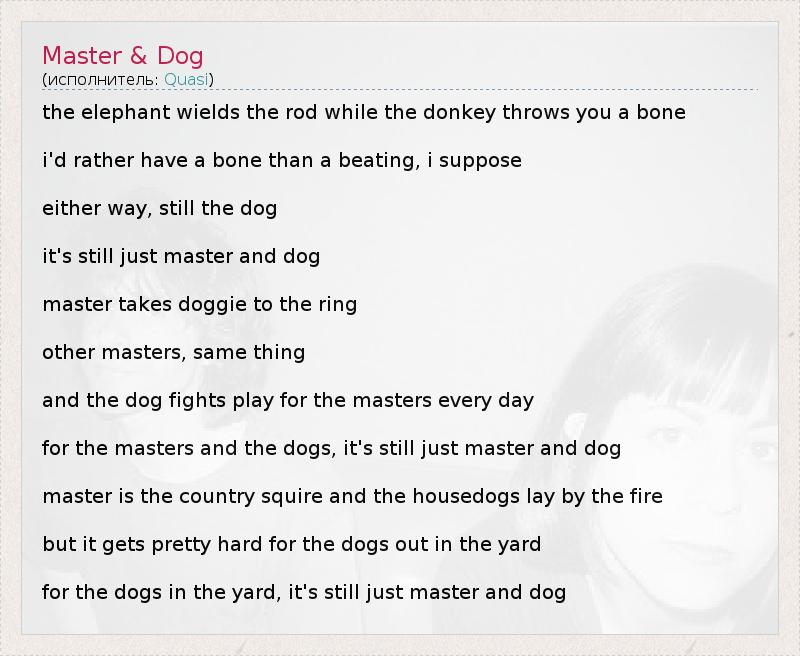 А как ты думаешь, о чем песня "Master & Dog" ?