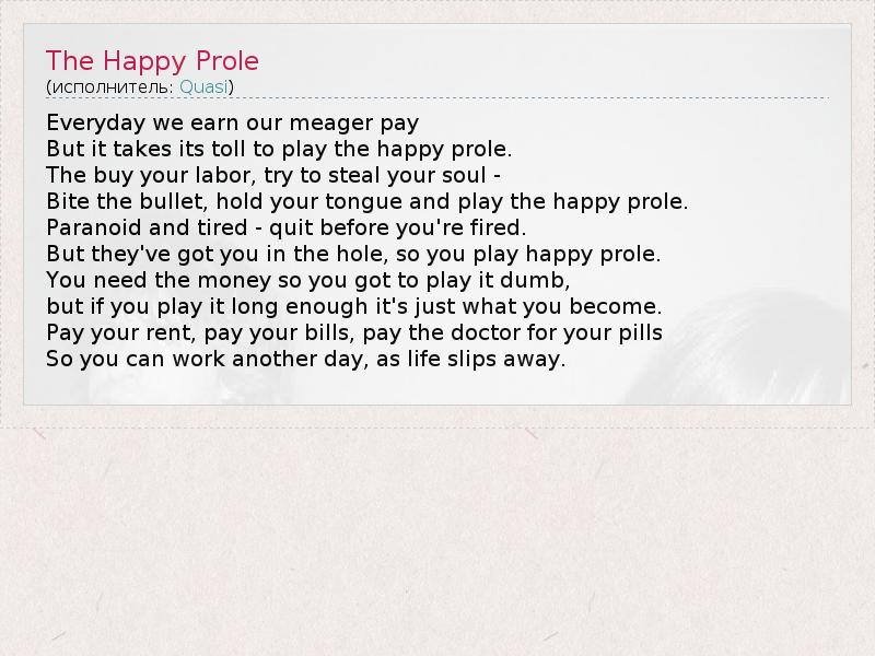 А как ты думаешь, о чем песня "The Happy Prole" ?