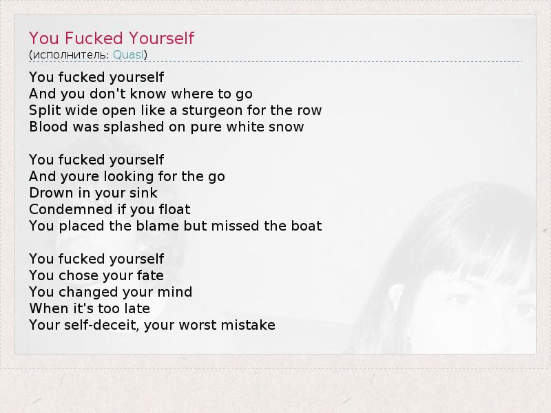 А как ты думаешь, о чем песня "You Fucked Yourself" ?