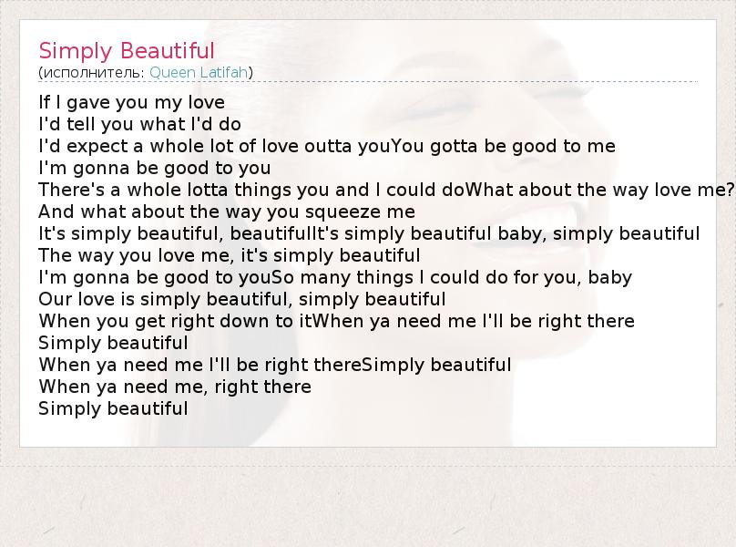 А как ты думаешь, о чем песня "Simply Beautiful" ?