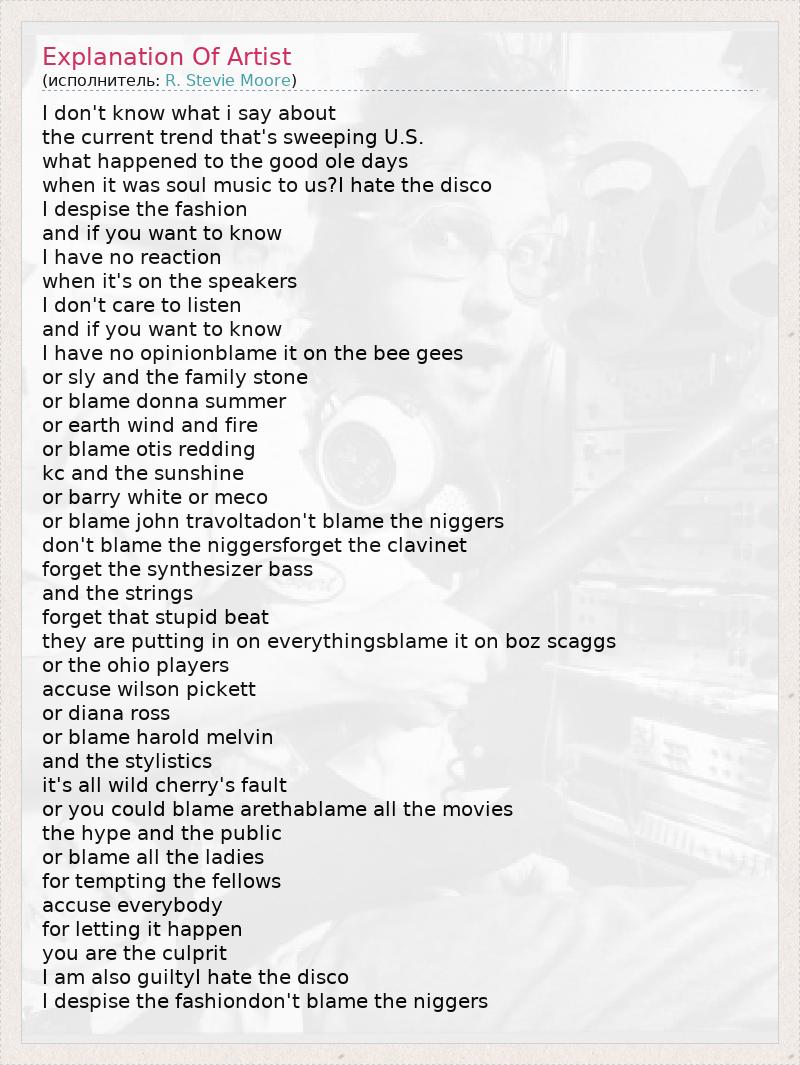 А как ты думаешь, о чем песня "Explanation Of Artist" ?