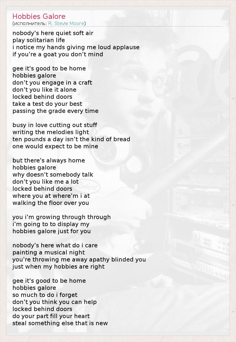 А как ты думаешь, о чем песня "Hobbies Galore" ?
