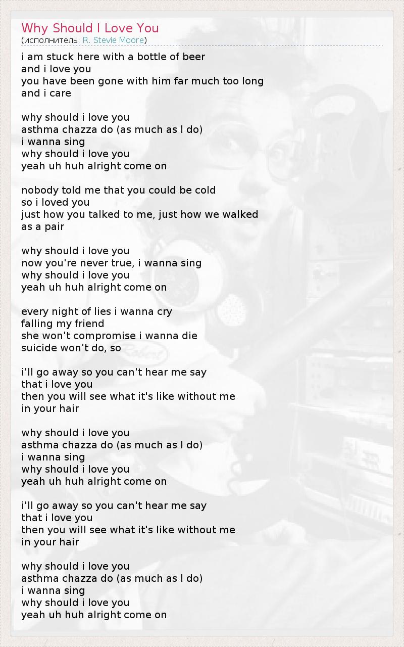 А как ты думаешь, о чем песня "Why Should I Love You" ?